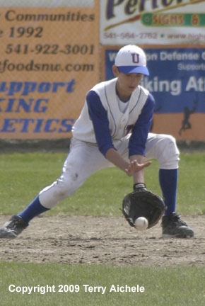 UMATILLA - The Umatilla Vikings split a doubleheader with the Nyssa Bulldogs on Saturday, April 18, 2009. Nyssa won the first game 9-2. Umatilla won the second game 11-10. It was a good day for baseball after a week of a cold wind.