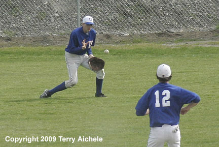 on a big shot to centerfield. Nyssa led at the end of two 9-2.