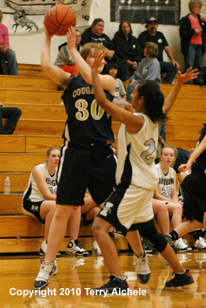 Echo outscored Irrigon 11-6 in the second period. Scoring for the Cougars included Loren Elligsen, Kristen McCallum and Taylor Tarvin. Scoring for Irrigon were Celina Munoz, Jessika Osborne and Cheyenne McKenney. Echo led at halftme 31-10.