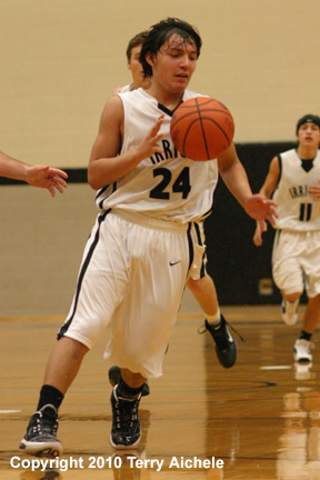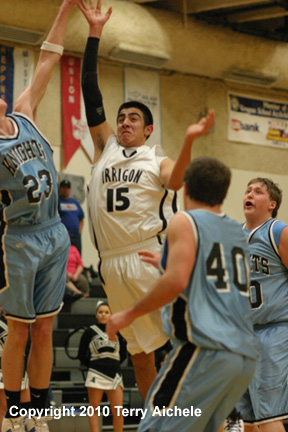 Irrigon continued to control the game out scoring Condon Wheeler 17-12 in the fourth period. Scoring in the fourth for Irrigon came from Colton Garrett who scored six in a row early in the period. Francisco Nunez hit a trey and two free throws. Jose Romero hit two shots in a row towards the end of the game. Irrigon won 58-44.
